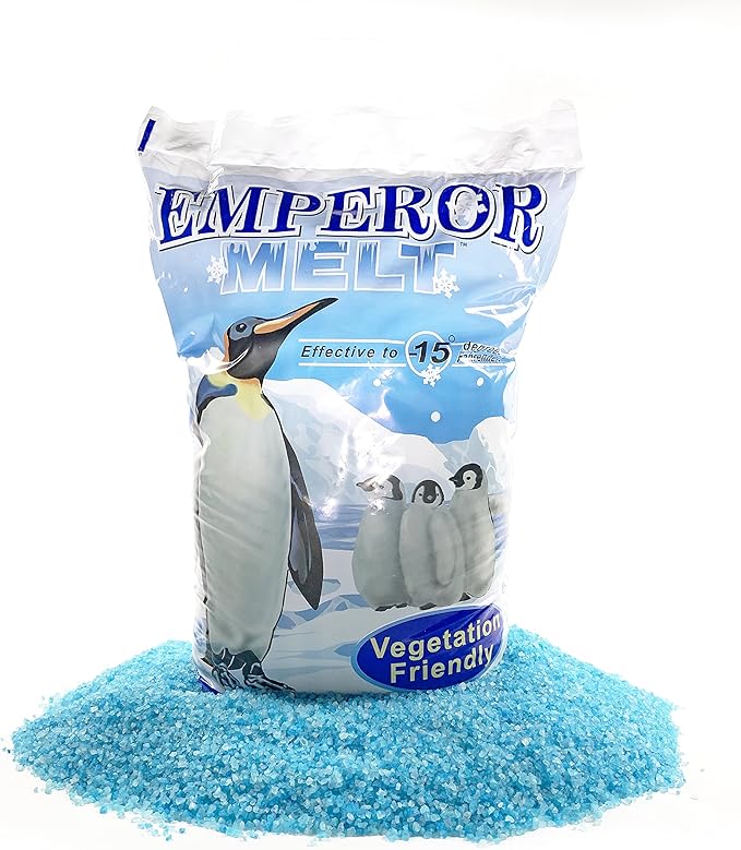 A pet-safe, environmentally friendly ice melt product that is effective down to -20 °F. It contains a blend of magnesium chloride, sodium chloride, and agricultural-based corrosion inhibitors, which makes it faster-acting and less corrosive to concrete, metal, and vegetation than traditional ice melts. The product is dyed blue for visibility and contains an anti-caking agent.